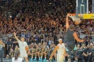 每日一扣!库里接弟弟赛斯传球 两次尝试后将球摁进篮筐