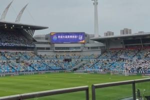 暖心!天津津门虎主场大屏幕打出“欢迎大连英博球迷!”字样