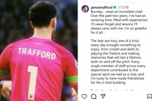 特拉福德社媒告别伯恩利:我度过了2年美妙时光,期待和你们重逢